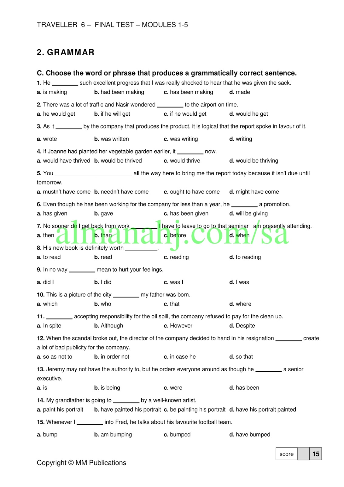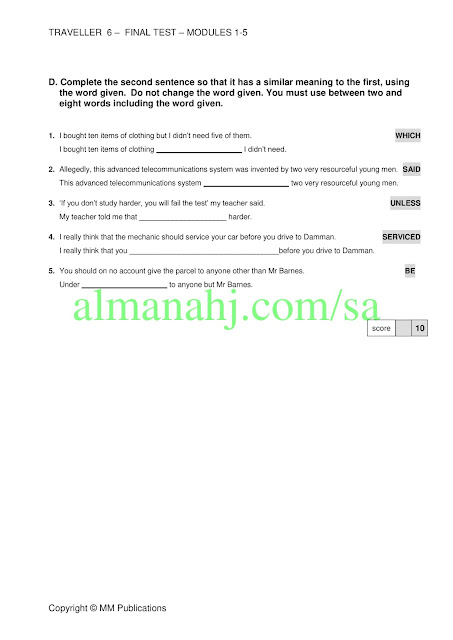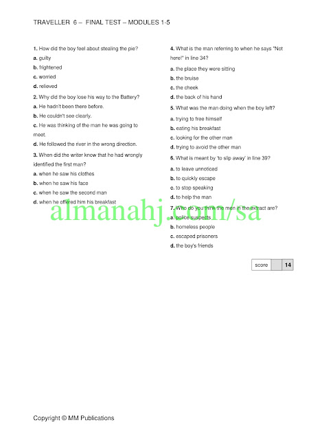 معلومات الملف: إليكم ملف يتضمن نموذج اختبار Traveller6 في مادة اللغة الانجليزية الصف الثالث الثانوي للفصل الدراسي الثاني وفق المنهاج السعودي | ||