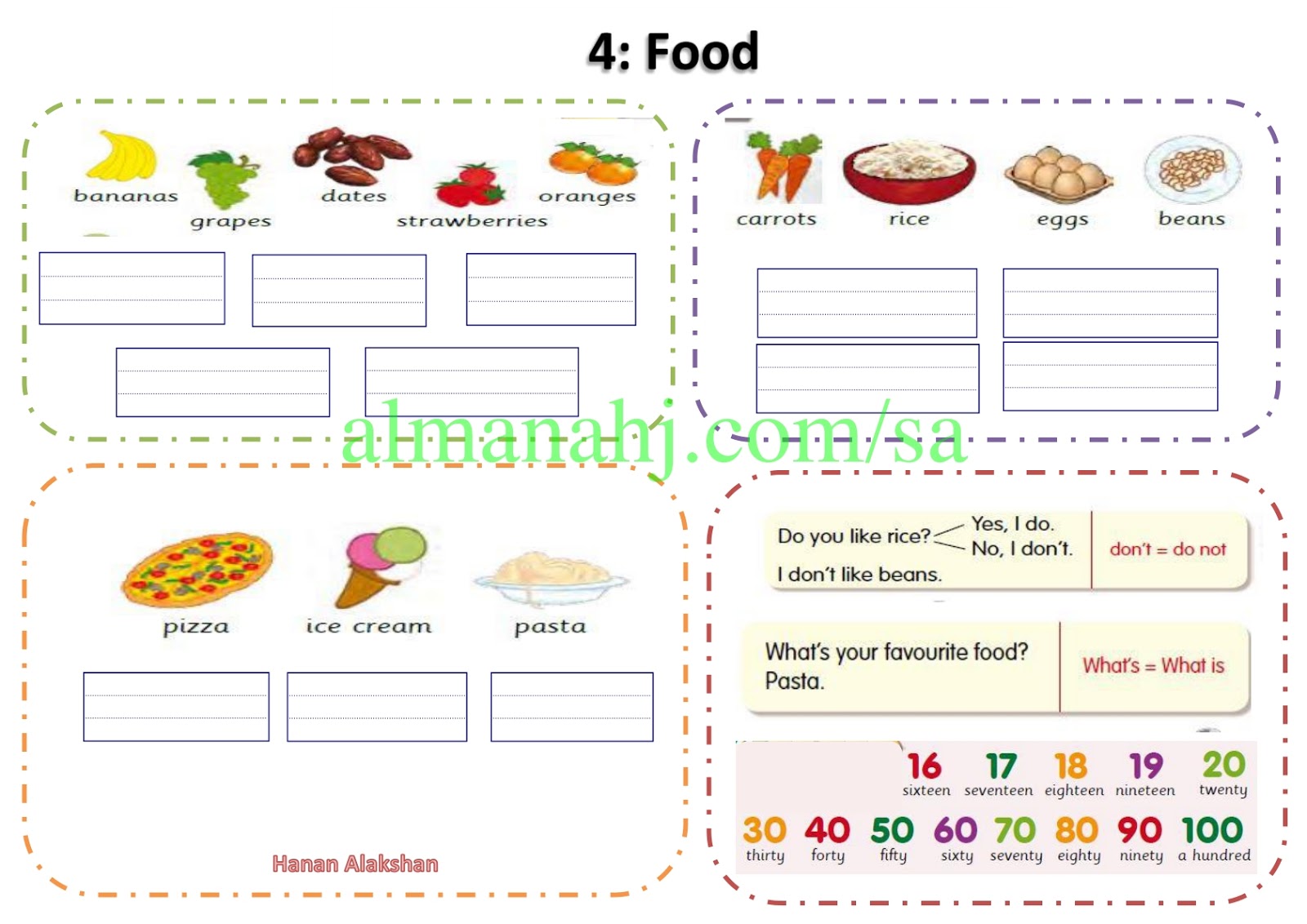 اليكم ملف يتضمن قاموس كلمات اللغة الإنجليزية food للصف الرابع الابتدائي وفق المنهاج السعودي