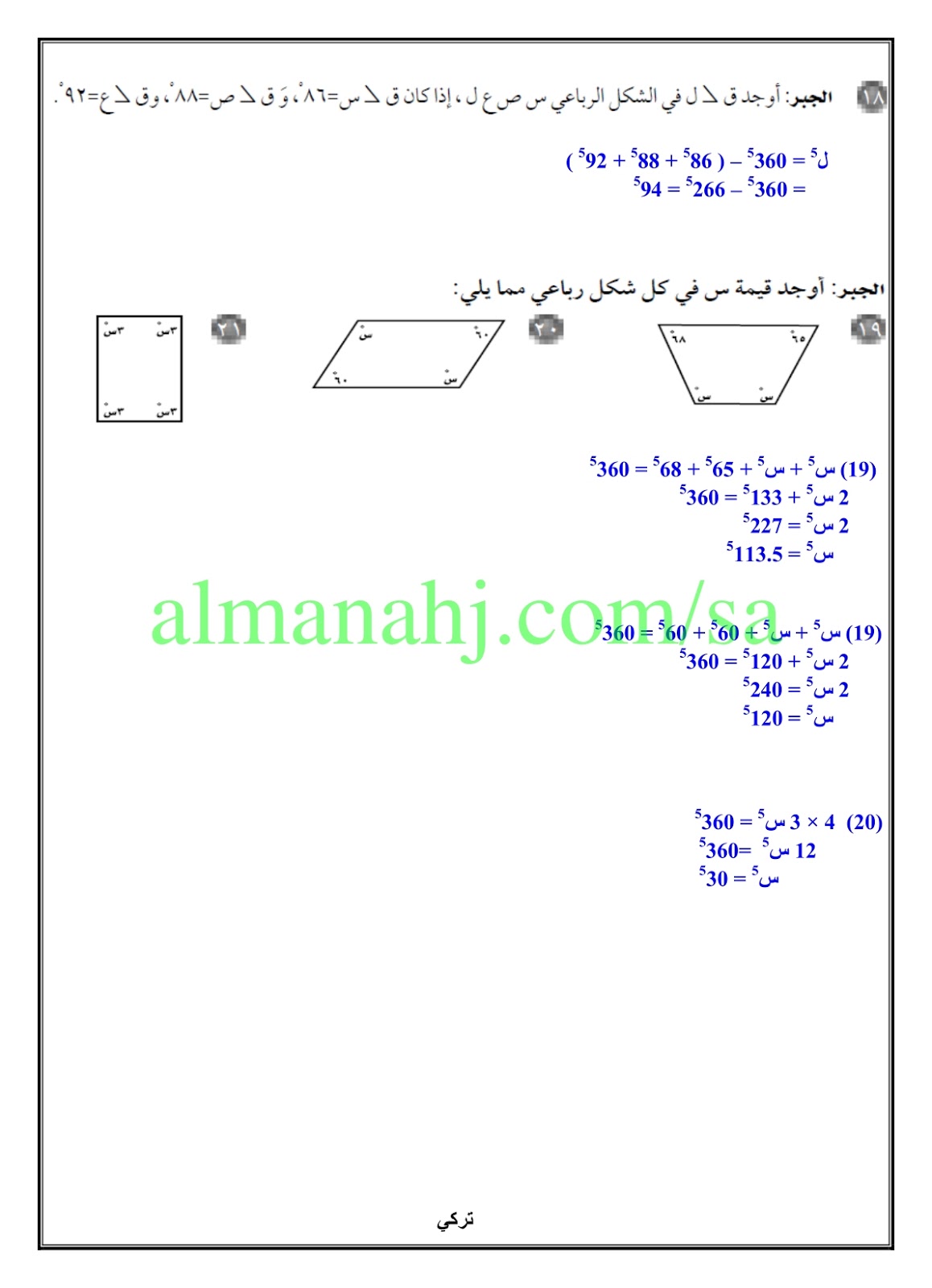 حلول تمارين الأشكال الرباعية