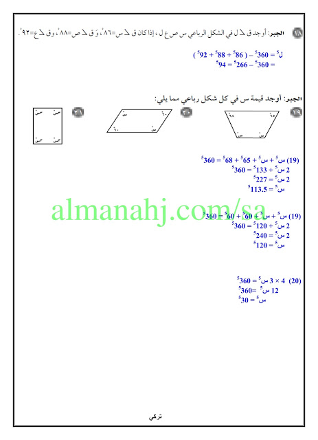 إليكم ملف يتضمن حلول تمارين كتاب الرياضيات (الأشكال الرباعية) للصف الأول متوسط الفصل الدراسي الثاني وفق المنهاج السعودي