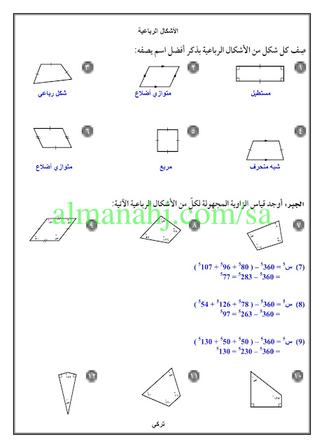 تم إيجاد الملف: حلول تمارين الأشكال الرباعية