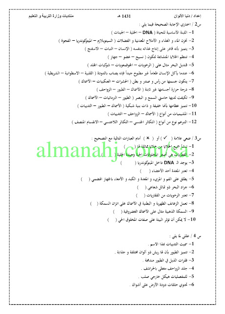15. علوم, الفصل الأول, 1447_1448, أوراق عمل شاملة لفصول مقرر 1447ه‍