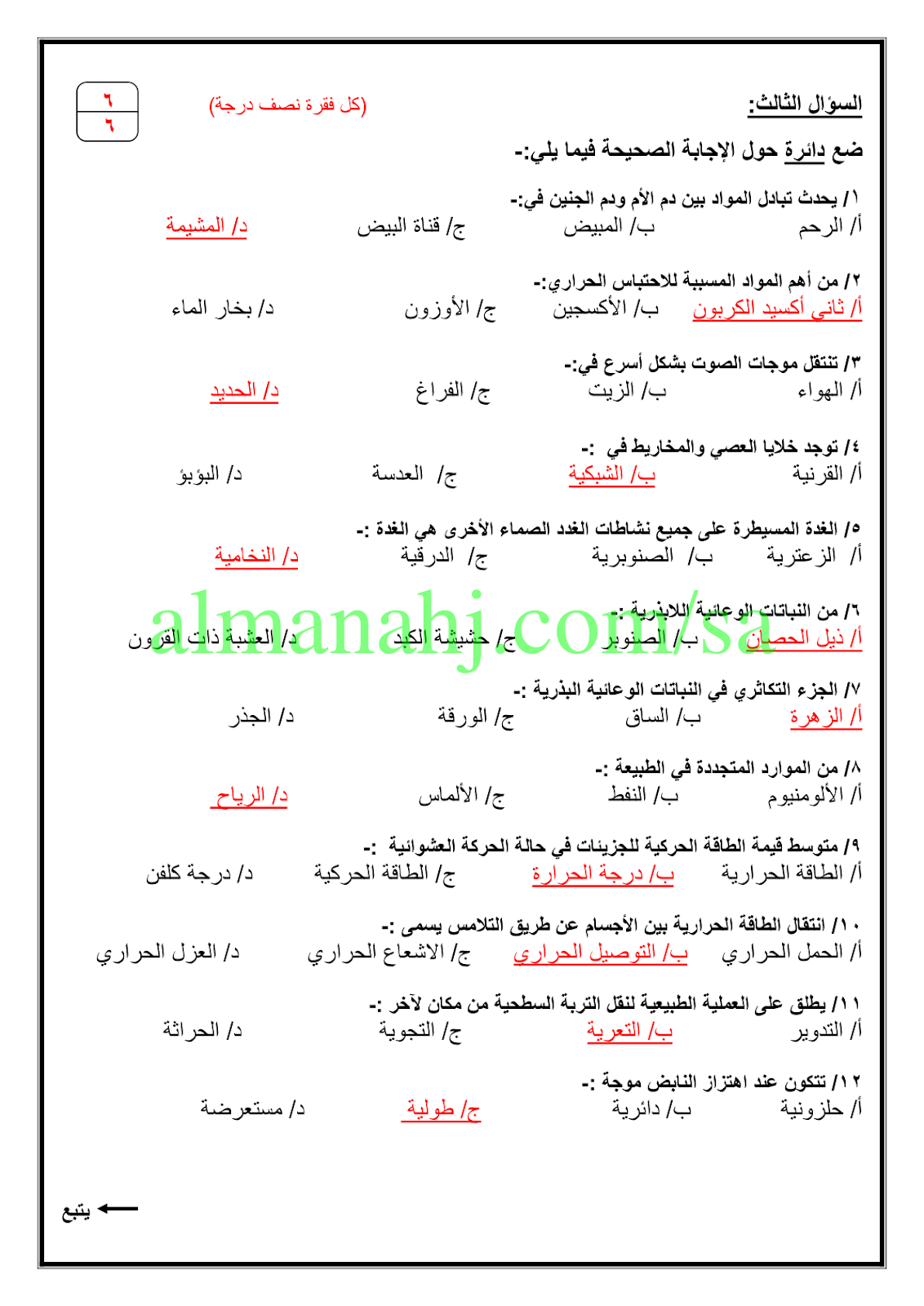 أنت هنا: موقع المناهجالمناهج السعودية الصف الثاني المتوسط علوم الفصل الثاني الامتحان النهائي