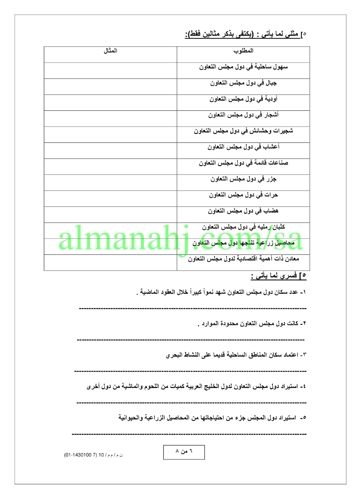 8. ورقة عمل الدرس الأول المظاهر الطبيعية لدول مجلس التعاون لدول الخليج العربي