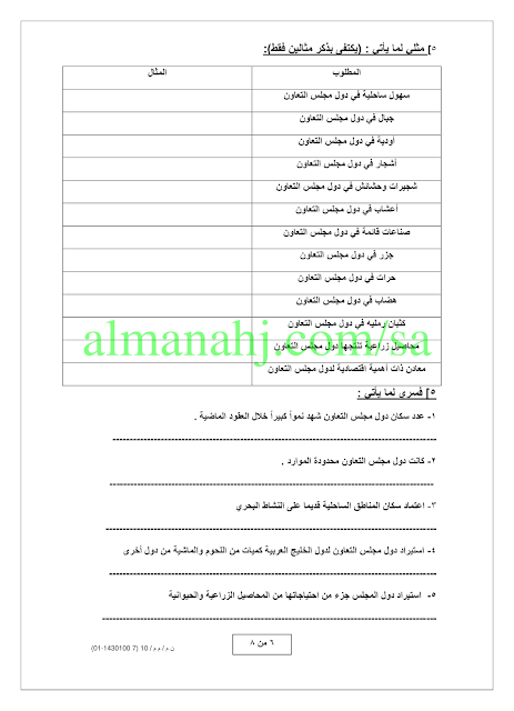 7. ورقة عمل الدرس الثاني المظاهر البشرية لدول مجلس التعاون الخليج العربية