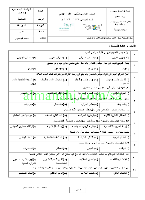 إليكم ملف يتضمن أسئلة الوحدة السادسة من مادة التربية الاجتماعية والوطنية للصف الثاني متوسط الفصل الدراسي الثاني وفق المنهاج السعودي