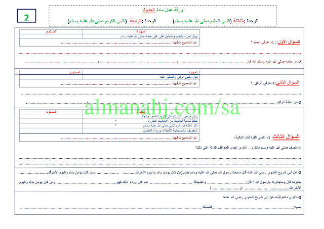 إليكم أوراق عمل في مادة الحديث للوحدتين الرابعة و الخامسة للصف الخامس الابتدائي وفق المنهاج السعودي