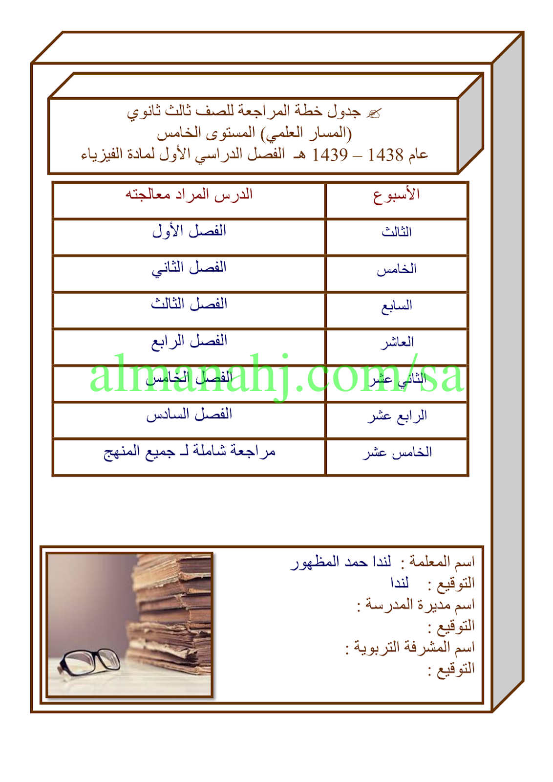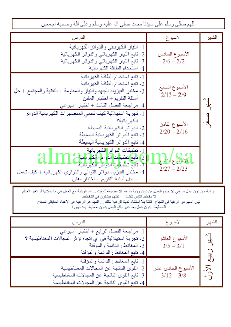 خطة توزيع المنهج الفيزياء - إعداد: لندا المظهور | ||