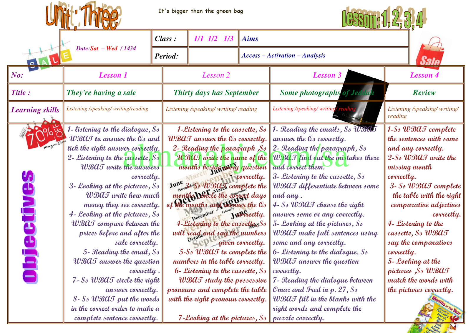 معلومات الملف: إليكم تحضير الوحدة الثالثة من مادة اللغة الانجليزية منهج Lift off 2 للصف الثاني متوسط وفق المنهج السعودي | ||
