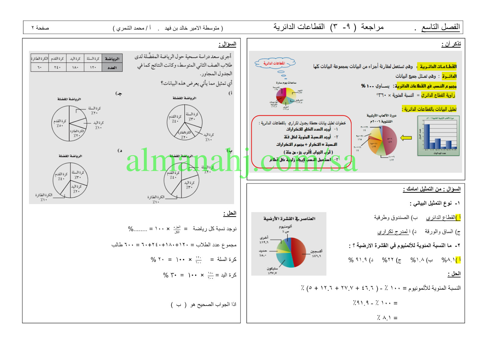 تم إيجاد الملف: مراجعة شاملة مع الحلول للفصل التاسع