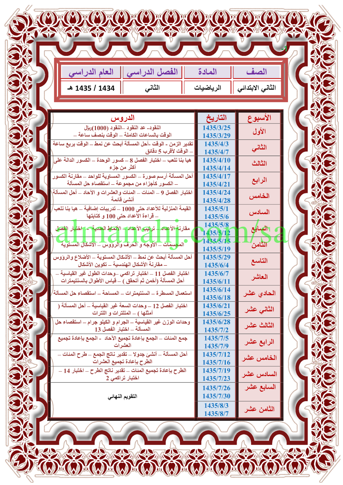 أحدث ملفات الصف الثاني, رياضيات, الفصل الثاني |
