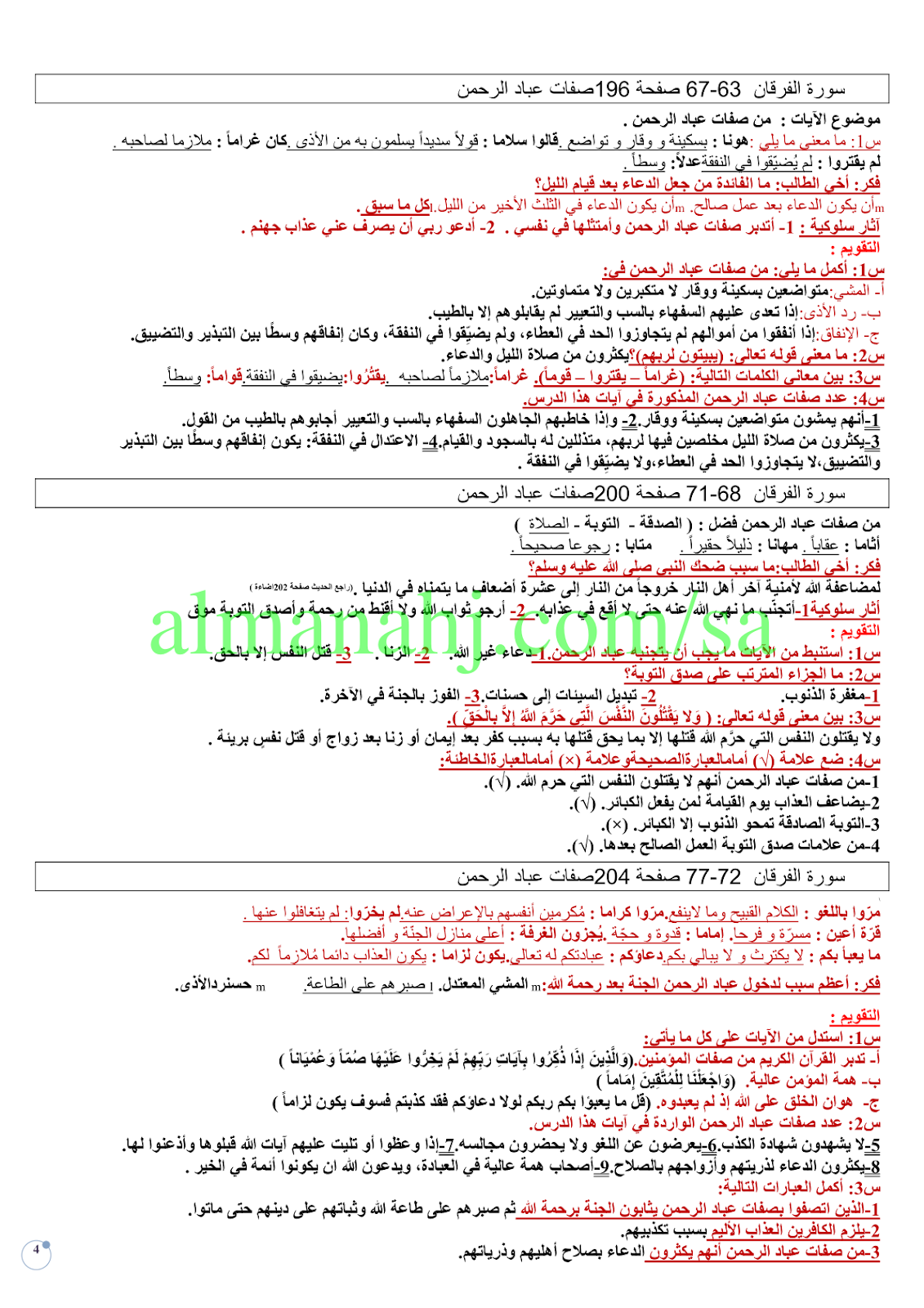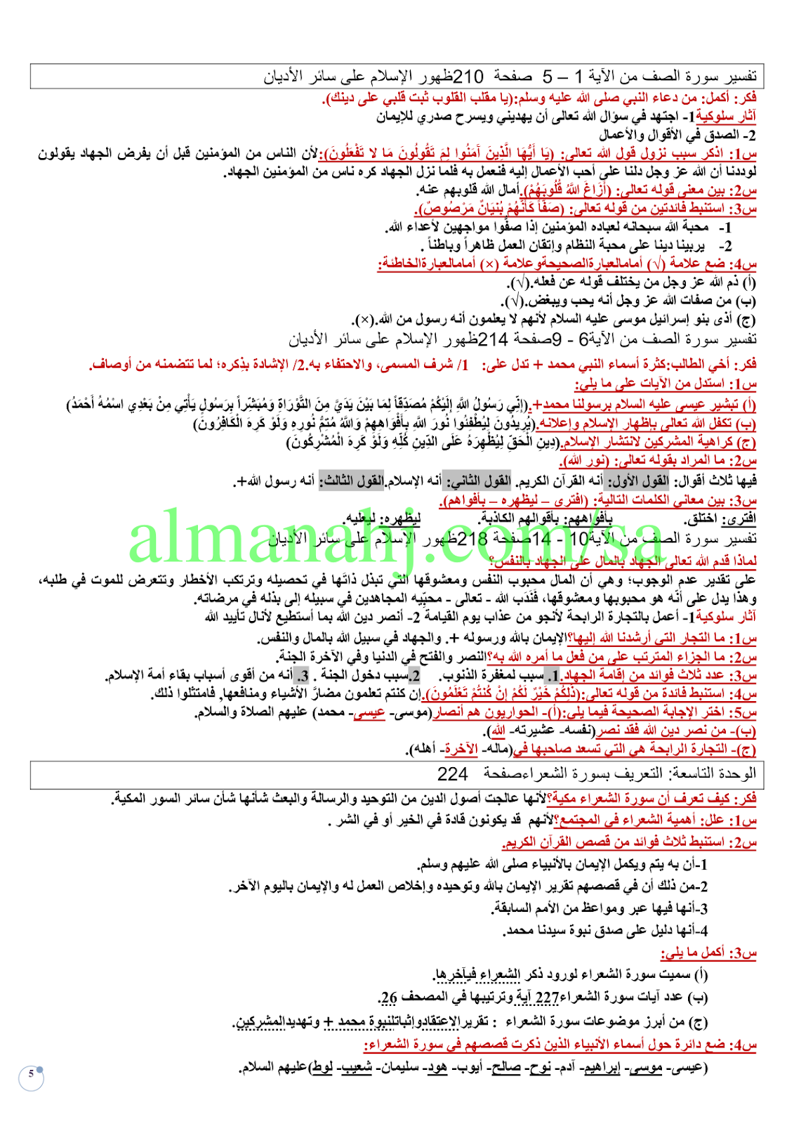 أحدث ملفات الصف الثاني المتوسط, دراسات اسلامية, الفصل الثاني
