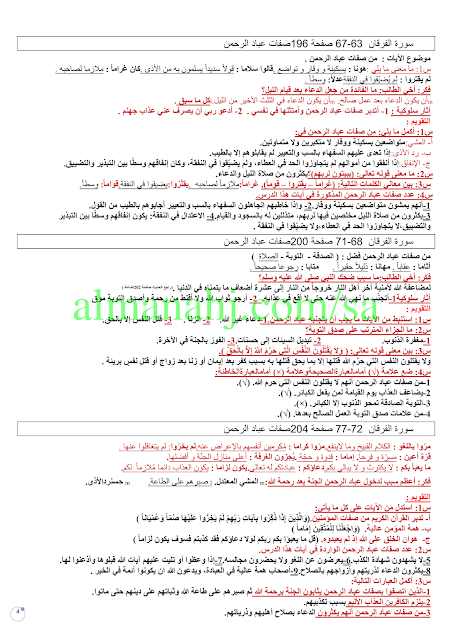 إليكم ملف هام يتضمن اجابة لاسئلة مادة التفسير للصف الثاني متوسط وفق المنهج السعودي