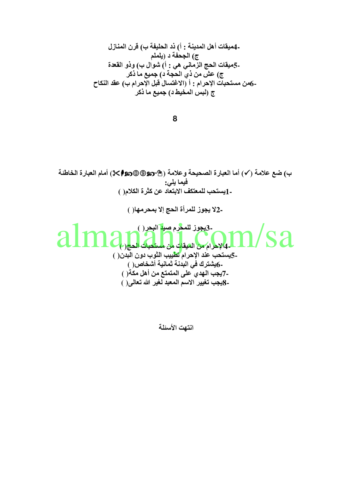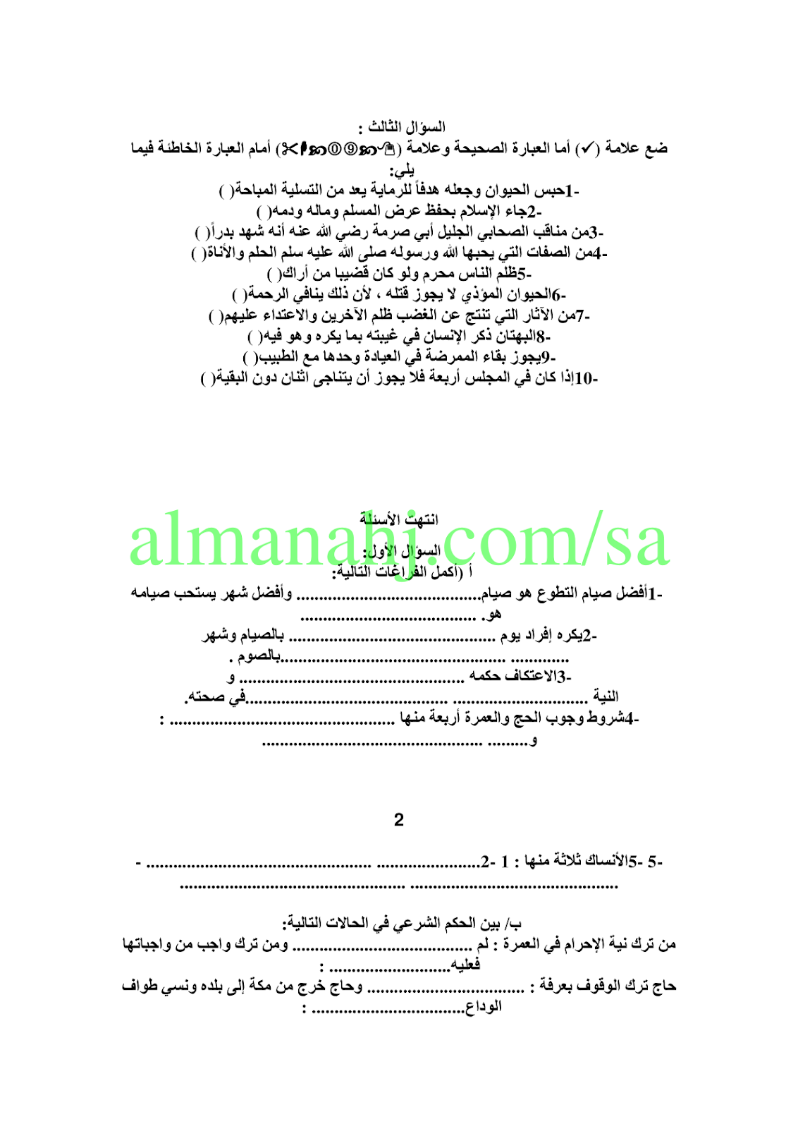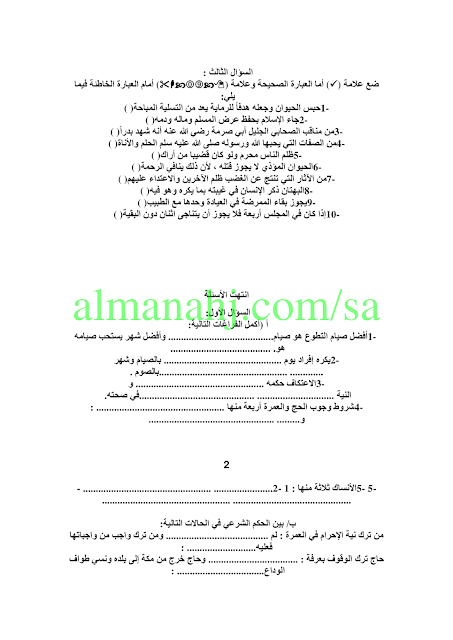 أنت هنا: موقع المناهجالمناهج السعودية الصف الثاني المتوسط دراسات اسلامية الفصل الثاني اختبارات