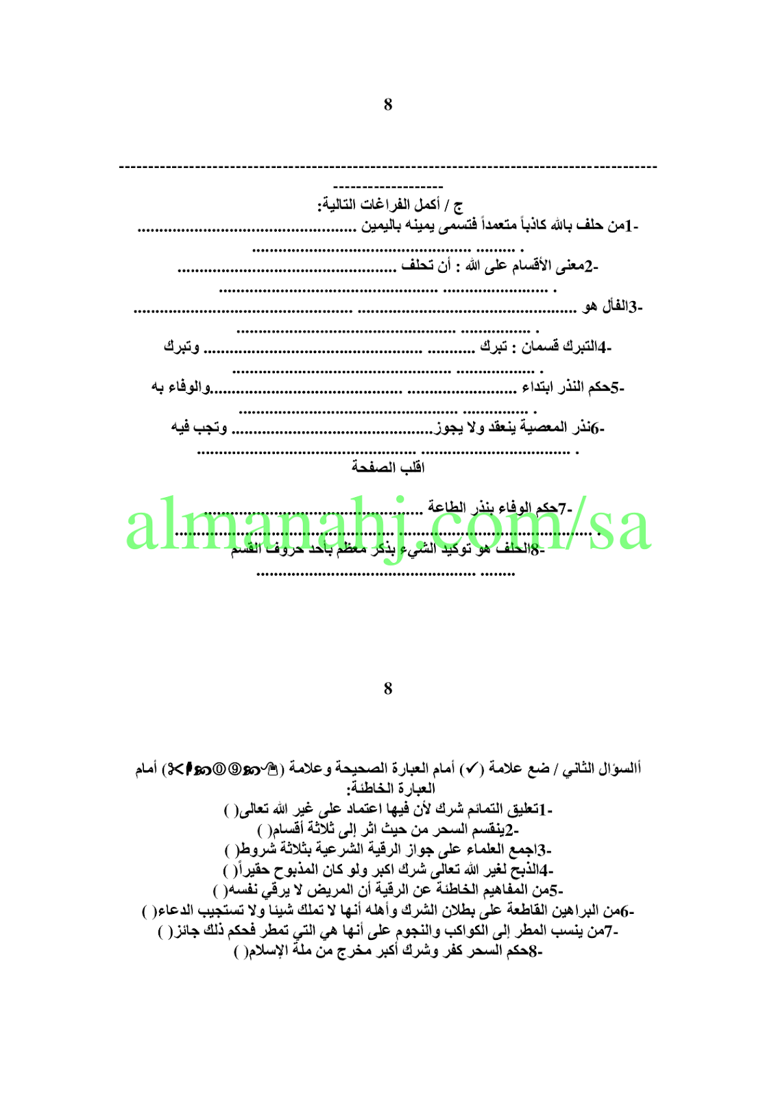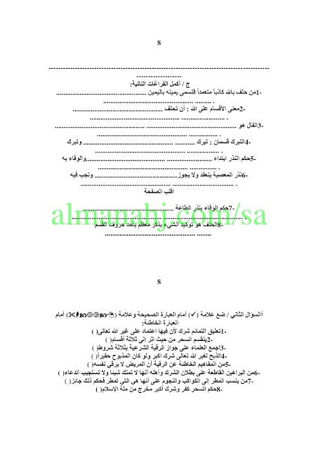 اليكم ملف هام يتضمن اختبار في مادة التوحيد للصف الثاني المتوسط وفق المنهج السعودي
