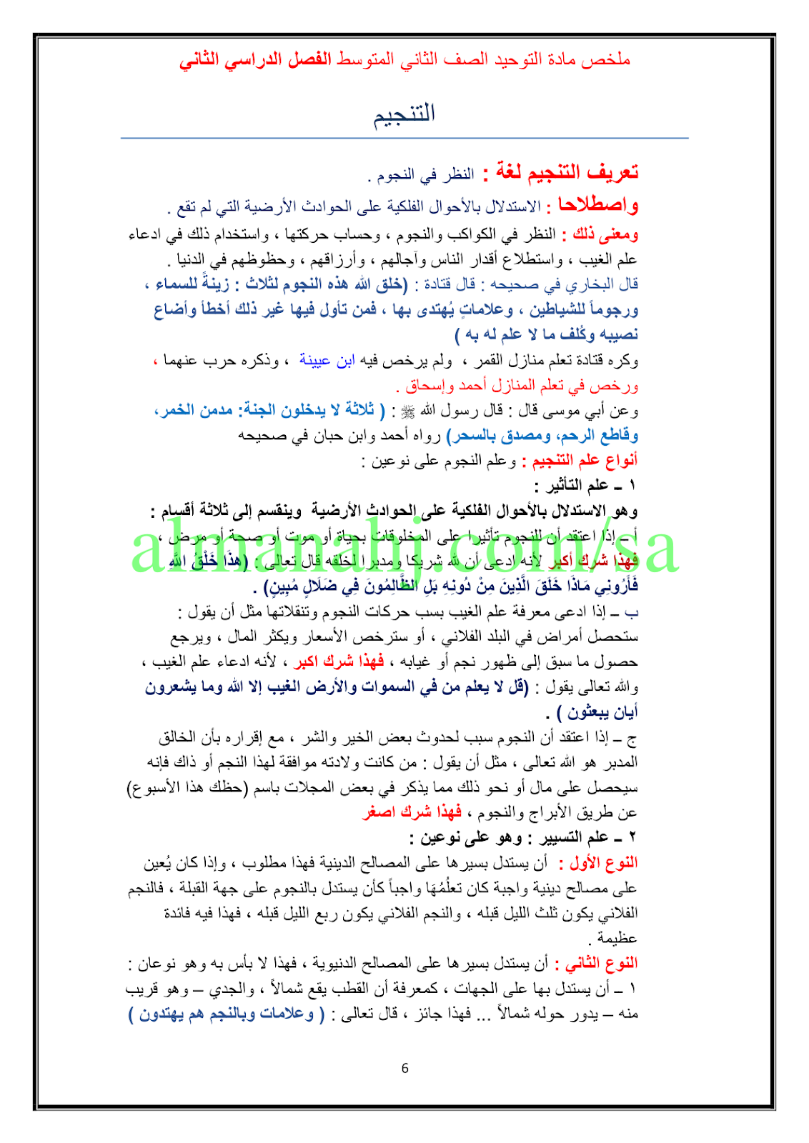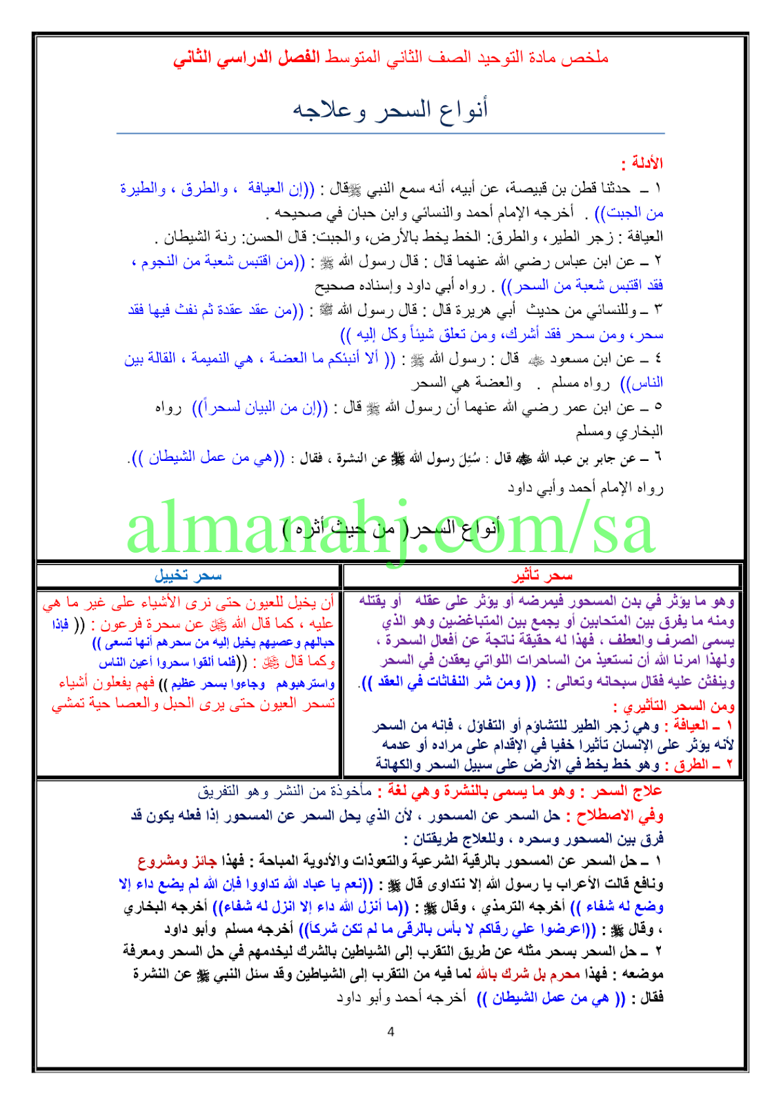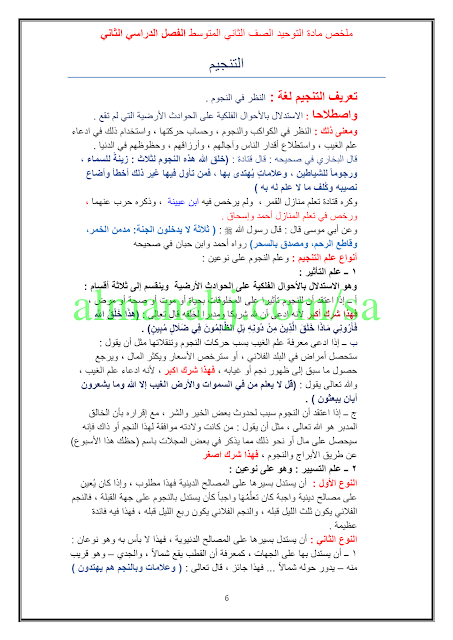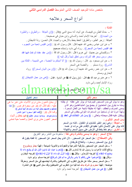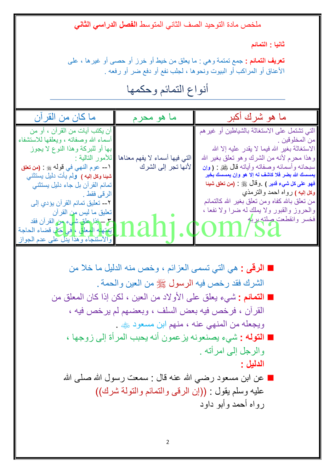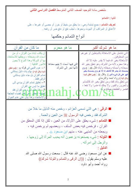 ملخص التوحيد, الصف الثاني المتوسط, دراسات اسلامية, الفصل الثاني, 2018-2019 - المناهج السعودية