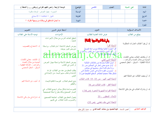 معلومات الملف: إليكم ملف هام في مادة اللغة العربية يتضمن تحضير وحدة الوطن ولاء وعطاء للصف الخامس الابتدائي وفق المنهج السعودي | ||