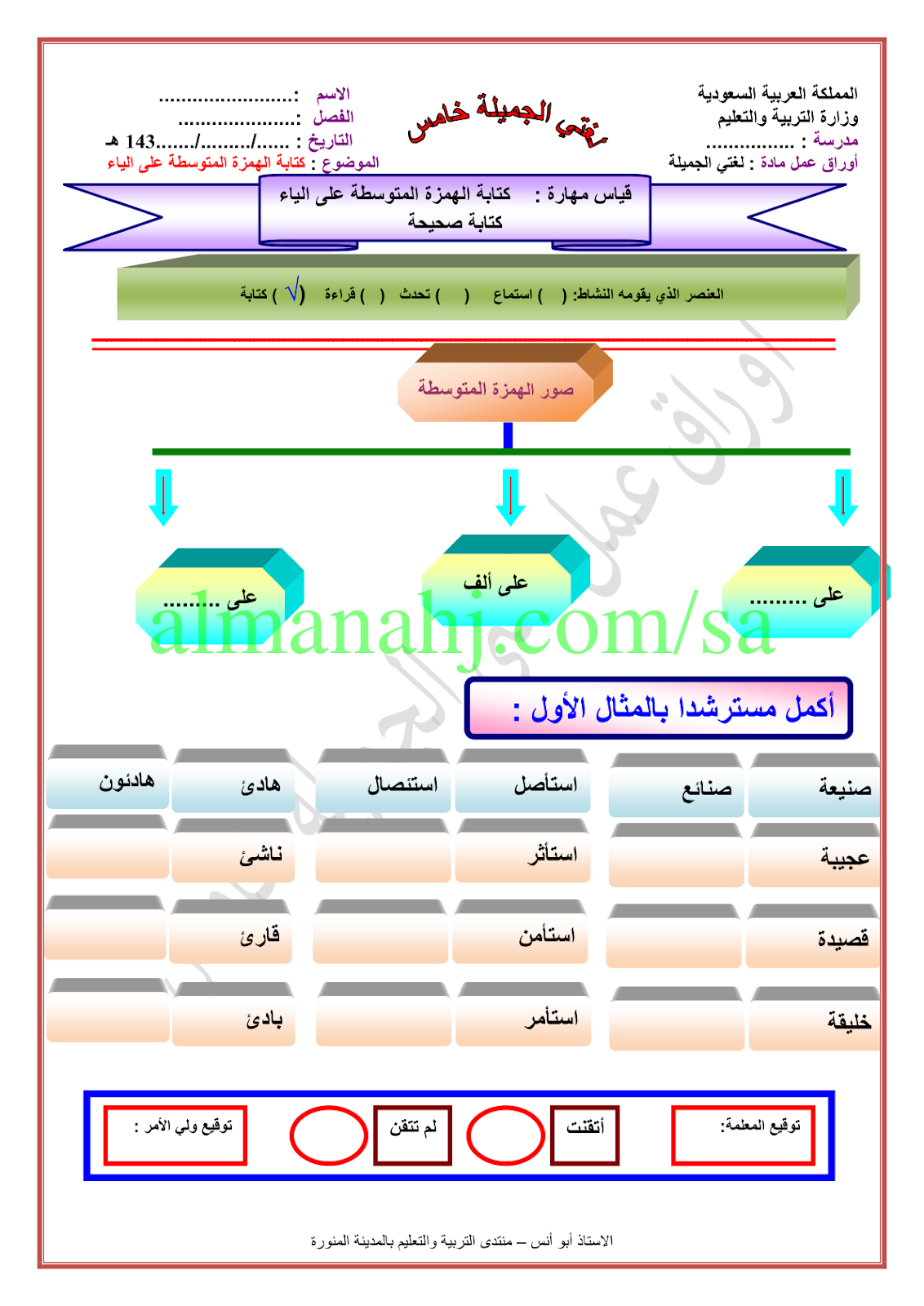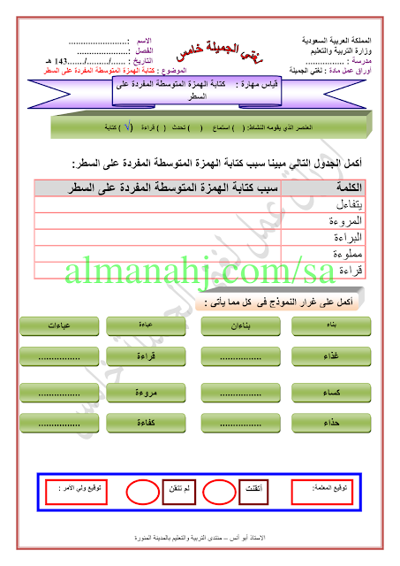 أوراق عمل الظاهره الاملائية