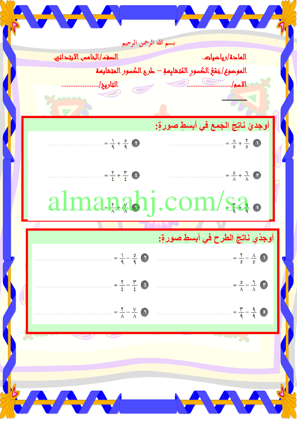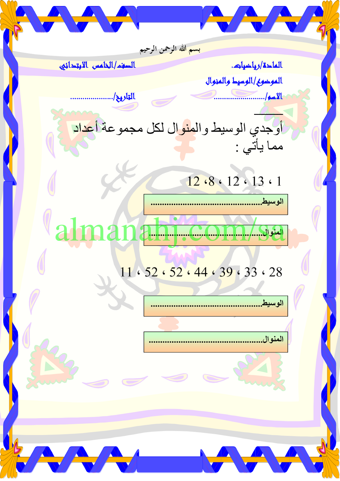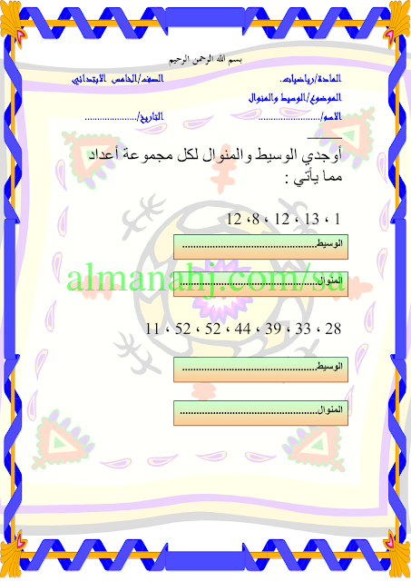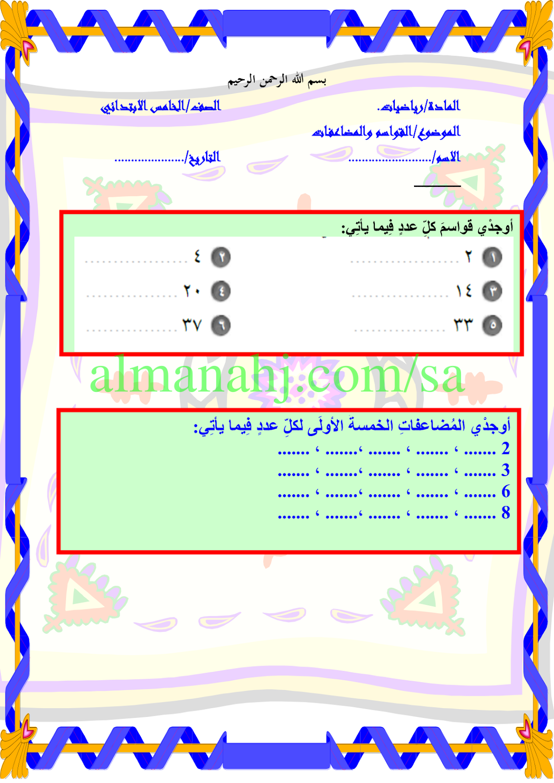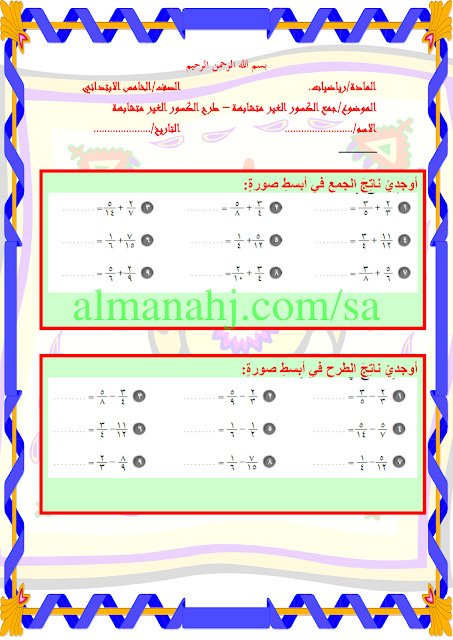 إليكم أوراق عمل هامة جدا في مادة الرياضيات للصف الخامس الابتدائي وفق المنهج السعودي