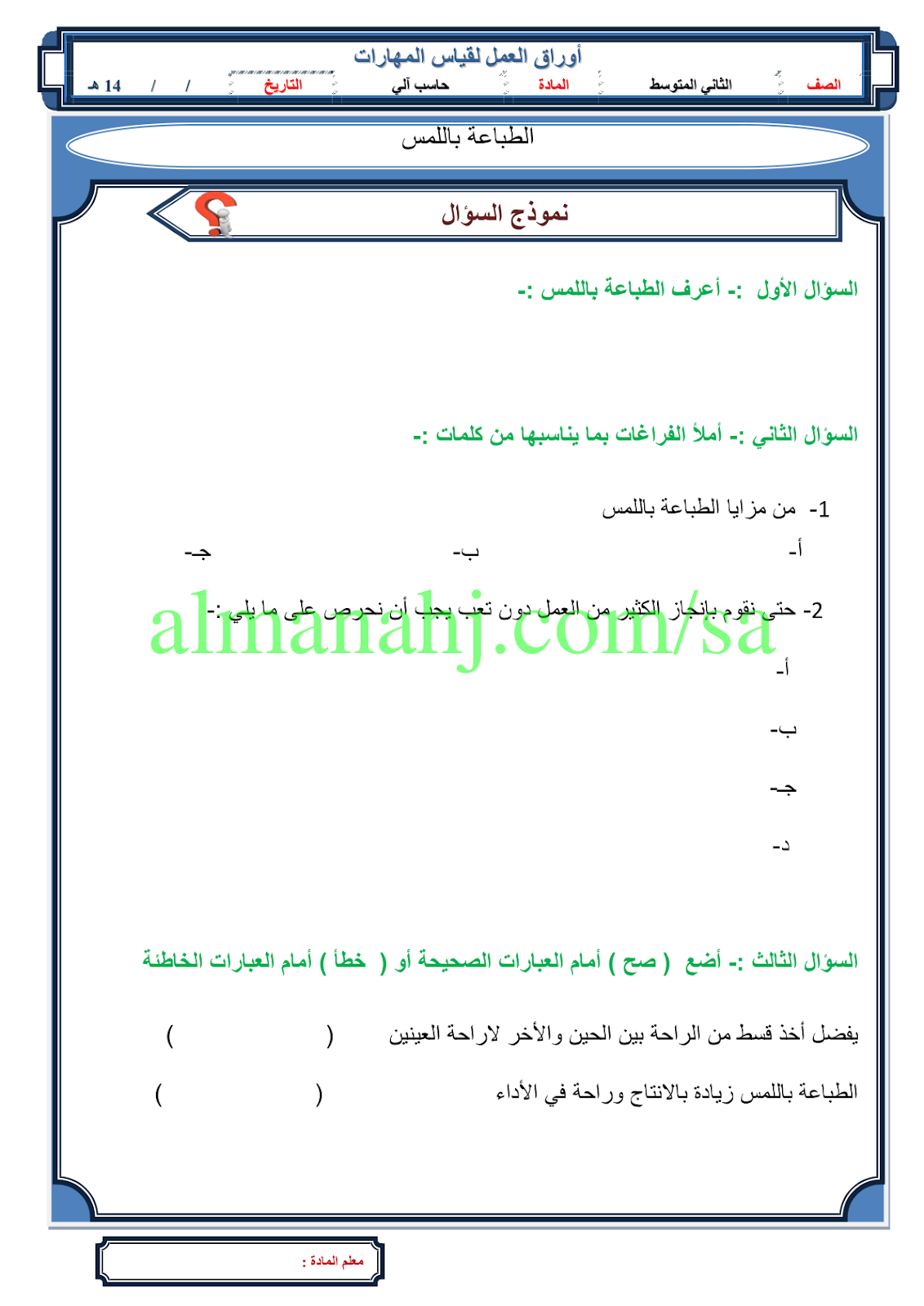 تم إيجاد الملف: تحضير وأوراق عمل حاسوب