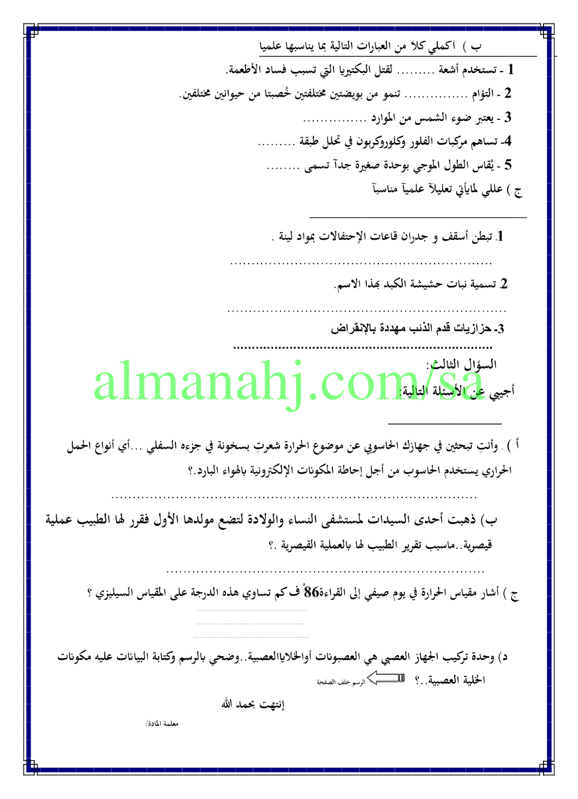 إليكم اسئلة اختبار في مادة العلوم/مطور جديد  للصف الثاني متوسط وفق المنهج السعودي