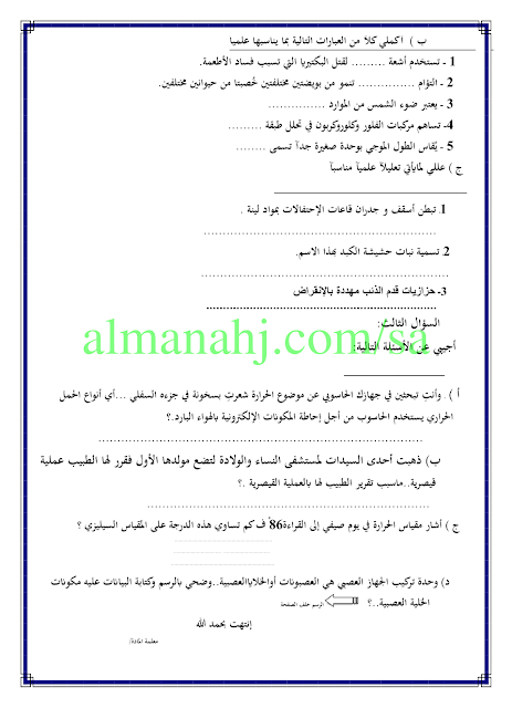4. نموذج أسئلة اختبار نهائي لمنطقة حايل