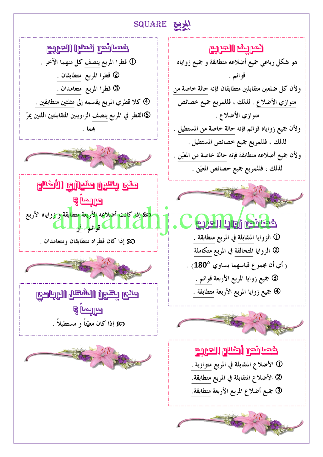 معلومات الملف: إليكم ورقة عمل هامة في مادة الرياضيات تتضمن درس المربع للصف الأول الثانوي وفق المنهج السعودي | ||