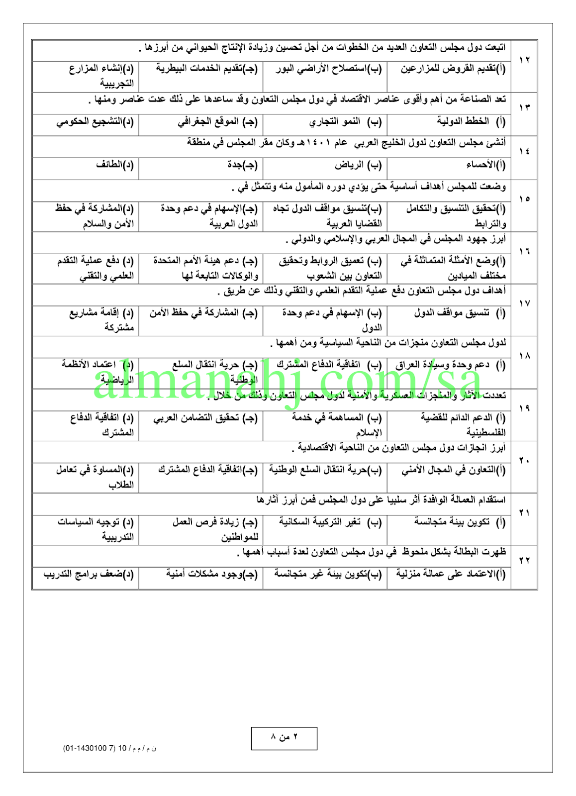 معلومات الملف: إليكم ملف هام يتضمن بنك اسئلة متنوعة في مادة الإجتماعيات للصف الثاني متوسط وفق المنهج السعودي | ||