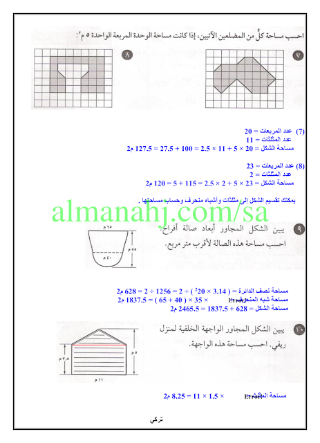 إليكم ملف هام يتضمن حلول تمارين كتاب الرياضيات /مساحة الأشكال المركبة للصف الأول متوسط وفق المنهج السعودي
