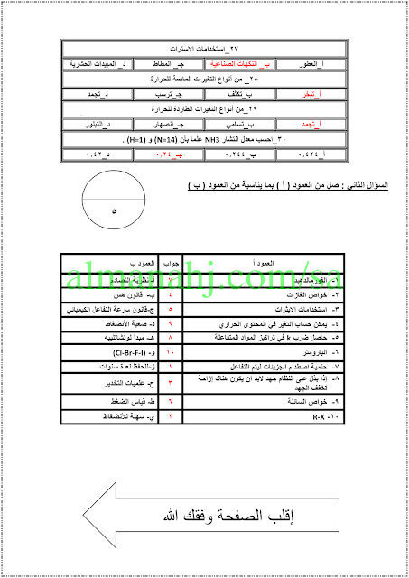 13. الصف الثاني الثانوي, رياضيات, نموذج حل مذكرة فصل المصفوفات كاملاً