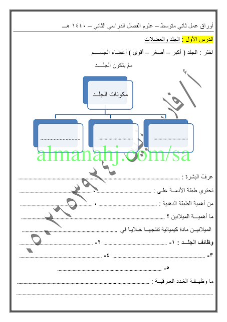 إليكم ملف هام يتضمن أوراق عمل هامة وجديده في مادة العلوم للصف الثاني متوسط وفق المنهج السعودي