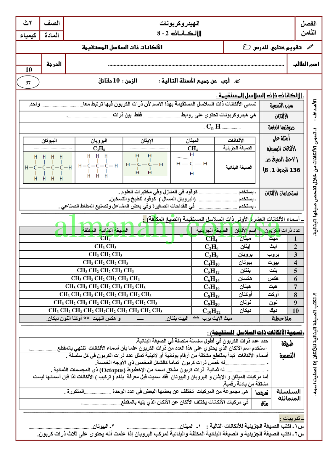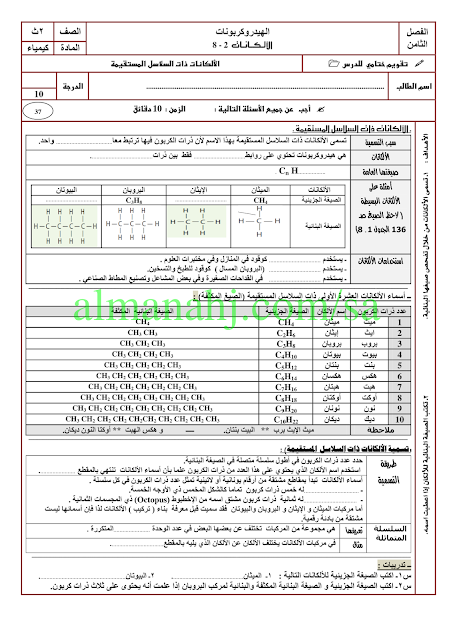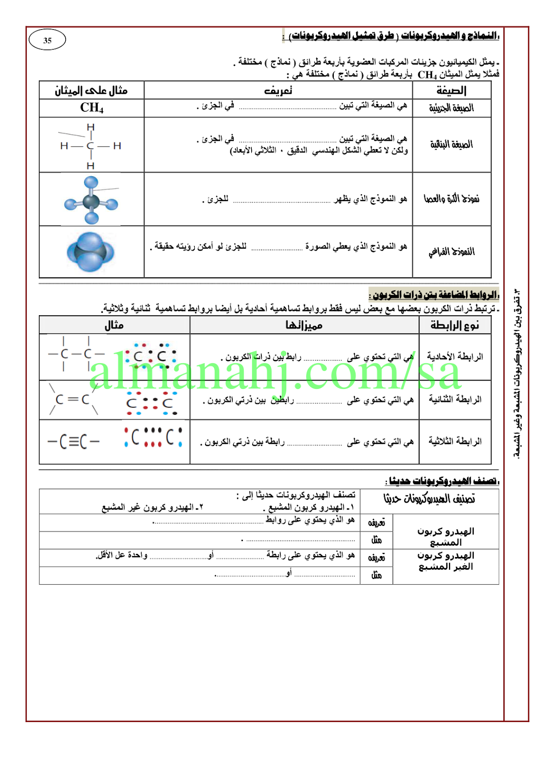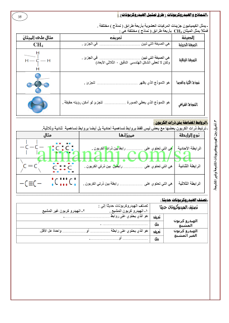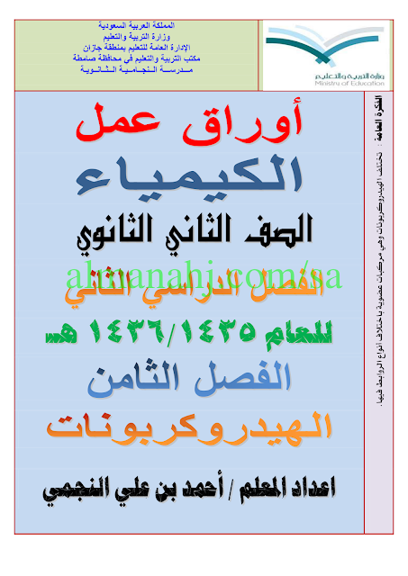 إليكم أوراق عمل هامة في مادة الكيمياء الفصل الثامن الهيدروكربونات للصف الثاني الثانوي وفق المنهج السعودي