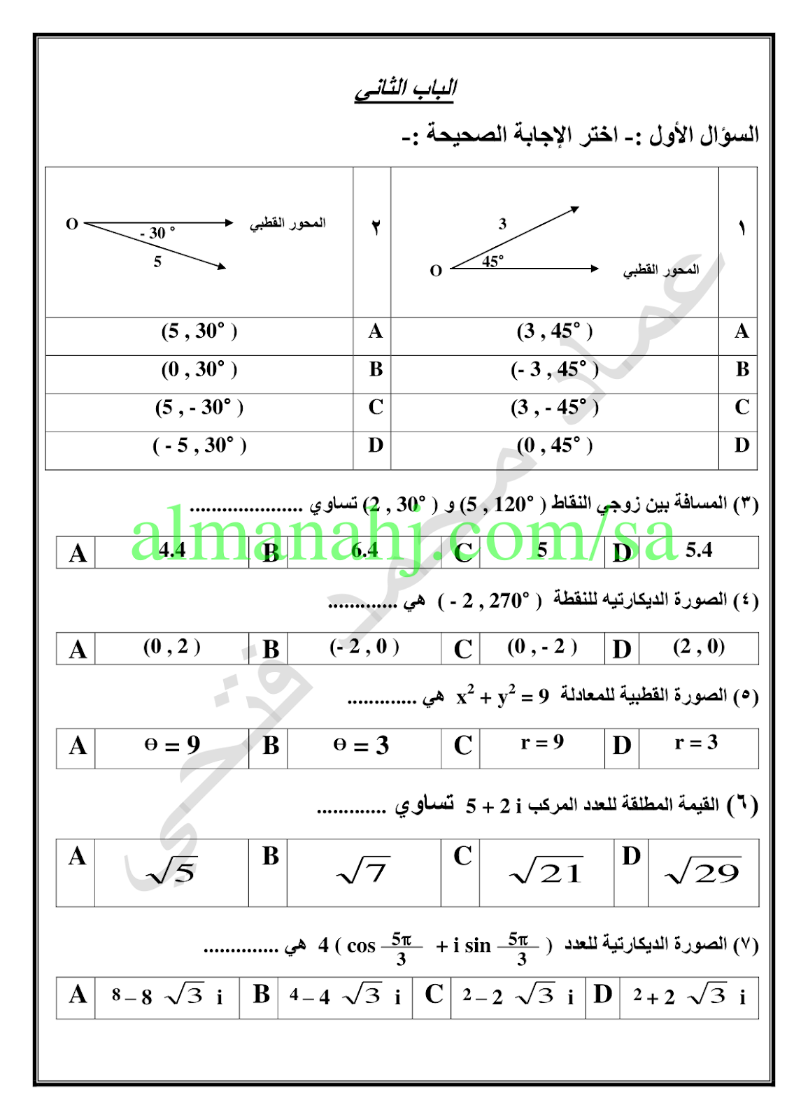 أحدث ملفات الصف الثالث الثانوي, رياضيات, الفصل الثاني