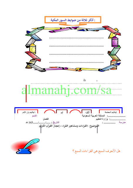 إليكم أوراق عمل هامة في مادة التفسير واصوله للصف الثاني الثانوي وفق المنهج السعودي