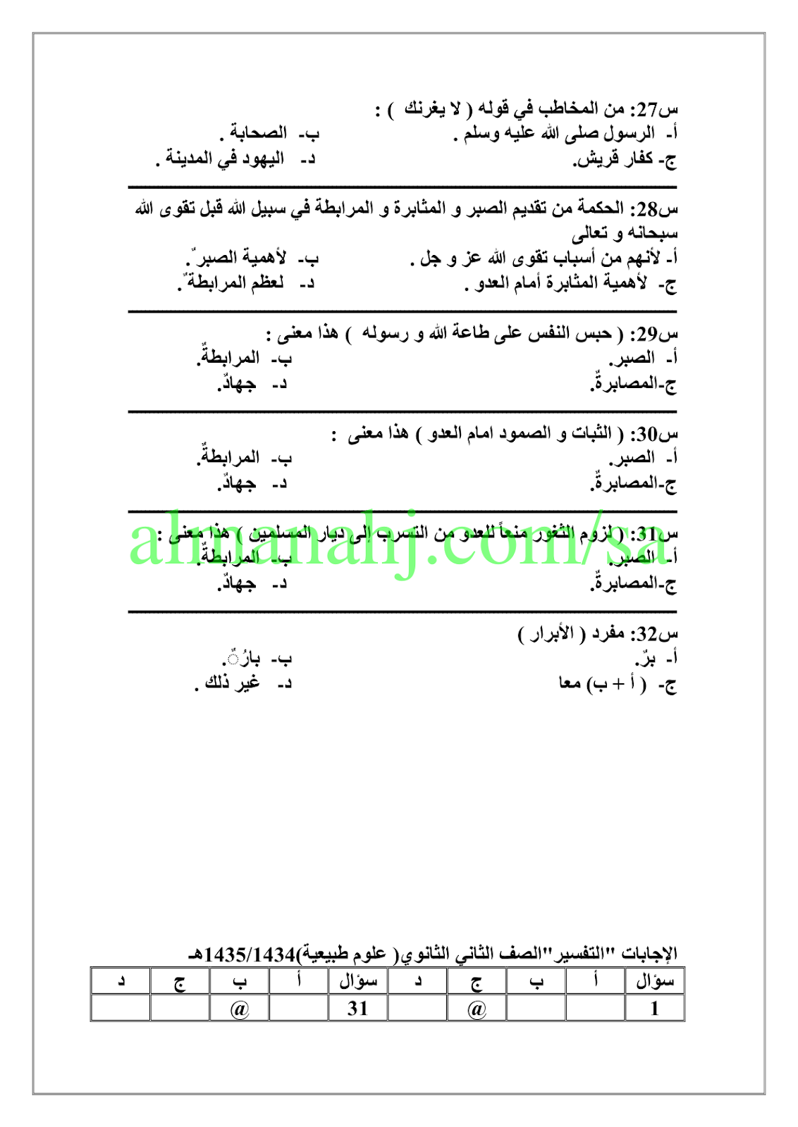 إليكم السلسلة الذهبية في الأسئلة التحصيلية لمادة التفسير للصف الثاني الثانوي المستوى الرابع
