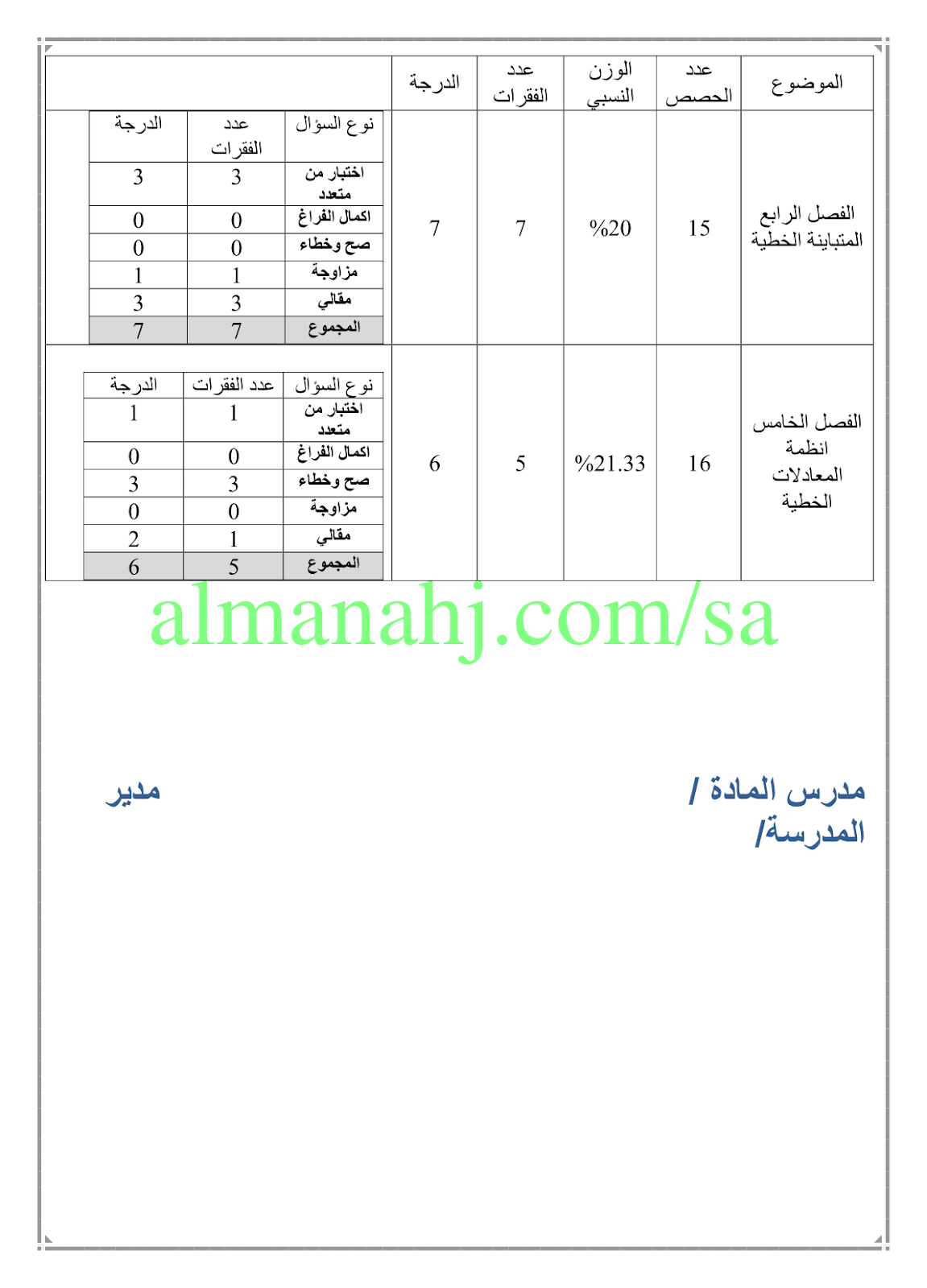 تم إيجاد الملف: جدول المواصفات رياضيات