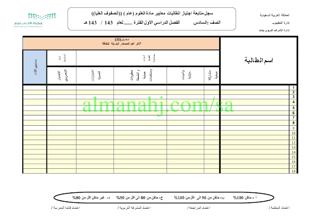 تم إيجاد الملف: سجل متابعة اجتياز معايير العلوم