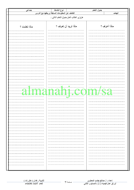 | أوراق عمل كيمياء | ||