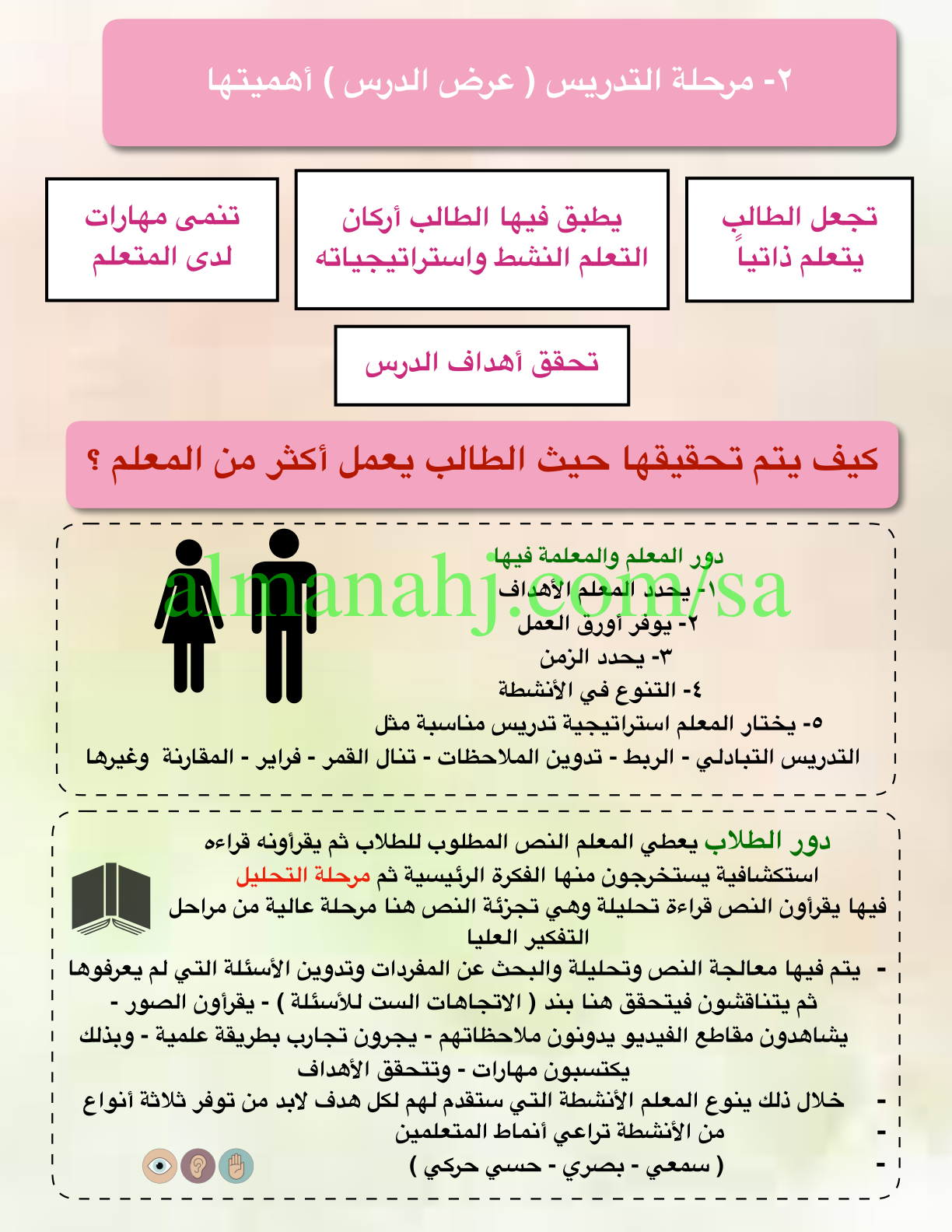 إليكم ملف يتضمن مراحل سير الحصه الدرسية والتي تبدأ بالمقدمة (أهميتها ومحتوياتها) ثم مرحلة التدريس (عرض الدرس) واهميتها ثم مرحلة التقويم (اهميته)