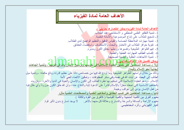 إليكم ملف يتضمن تحضير مادة الفيزياء للصف الثاني الثانوي للفصل الدراسي الأول