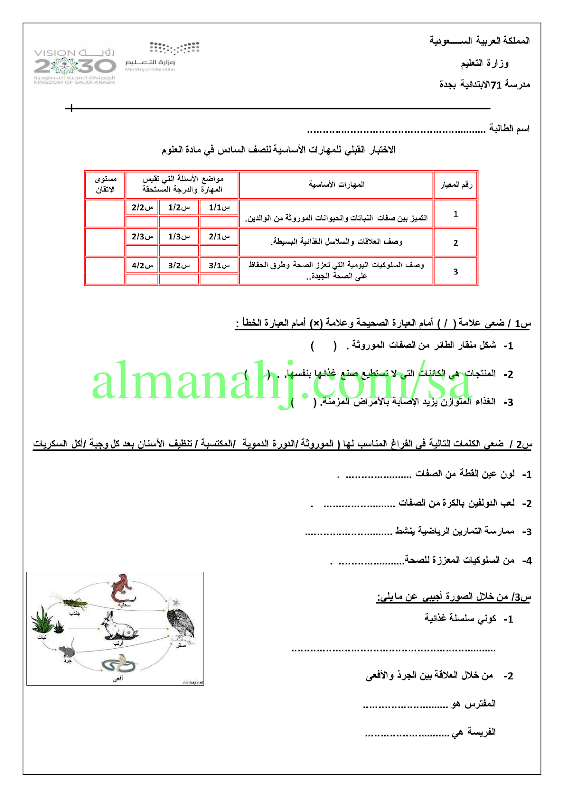 أنت هنا: موقع المناهجالمناهج السعودية الصف السادس علوم الفصل الأول أوراق عمل