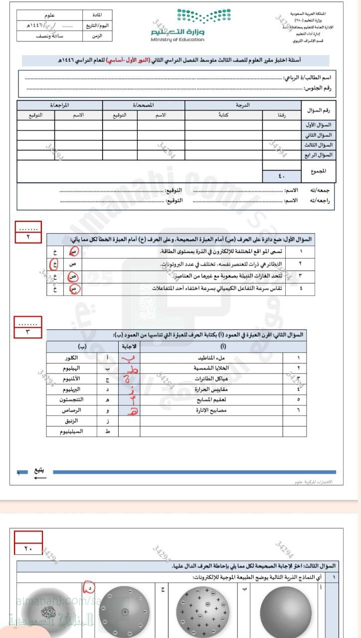 | إجابة اختبار مقرر الدور الأول الأساسي1446 | ||