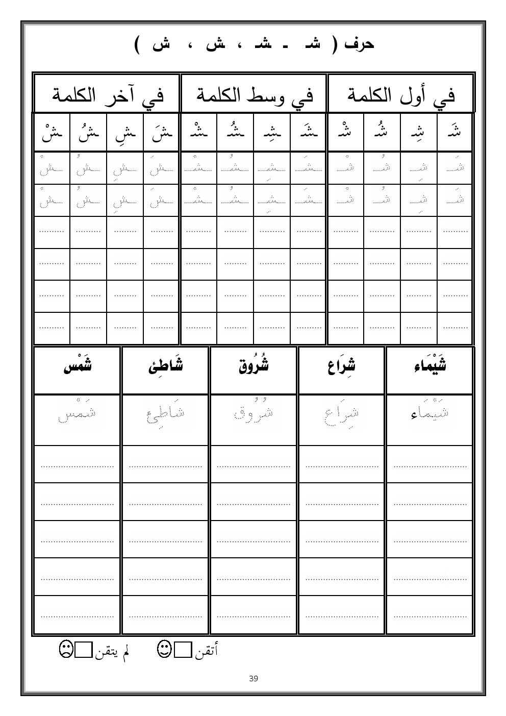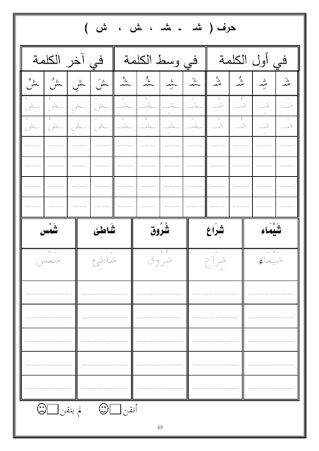 1. لغة عربية, الفصل الأول, 1447_1448, إملاء منسوخ و اختباري لحرف الحاء