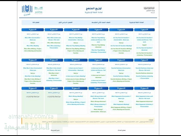 أنت هنا: موقع المناهجالمناهج السعودية الصف الثاني المتوسط لغة انجليزية الفصل الأول ملفات المدرس