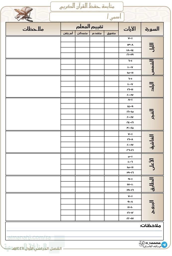 استمارة متابعة القرآن الكريم 1447ه‍ - إعداد: عبد الله الغامدي