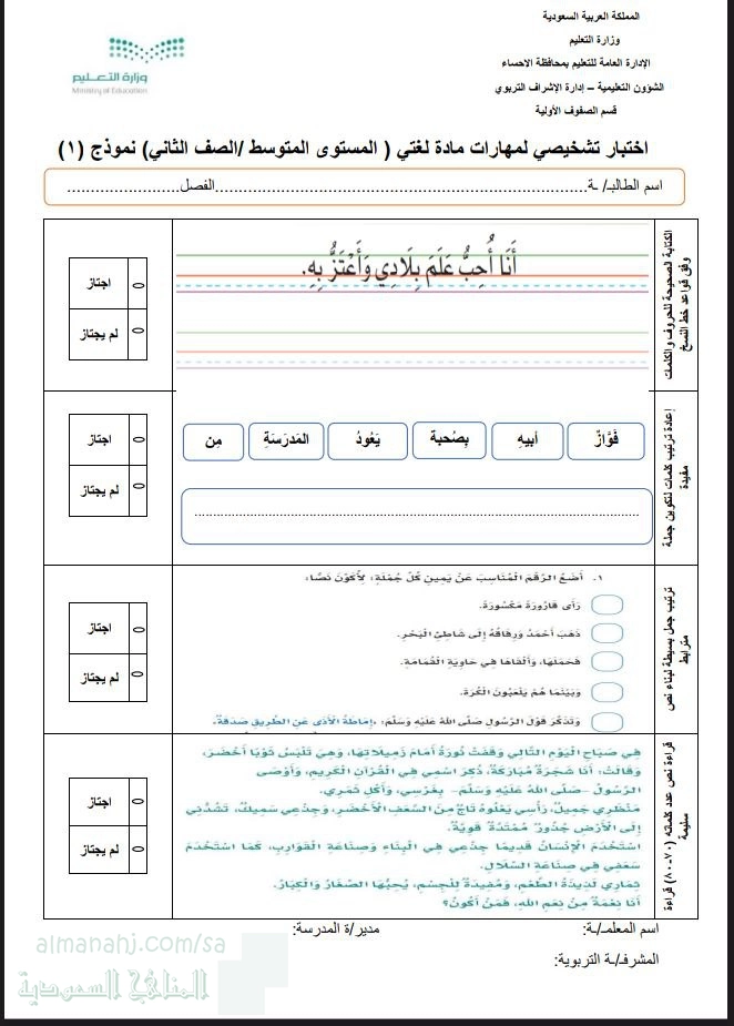 اختبارات تشخيصية لمهارات لغتي 1447ه | ||