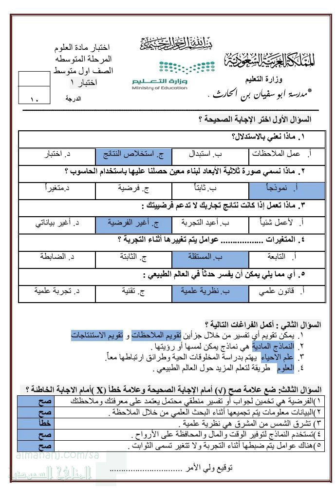 5, الصف الأول المتوسط, لغة عربية, اختبار لغتي الفترة الأولى 1447ه