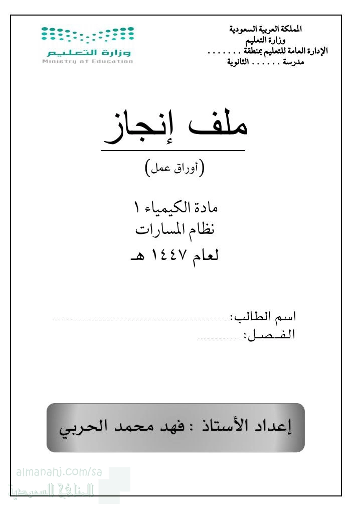 ملف إنجاز كيمياء 1 للعام 1447ه‍ - إعداد: فهد الحربي