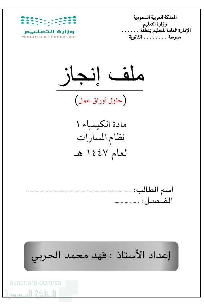 حلول ملف إنجاز كيمياء 1 للعام 1447ه‍ - إعداد: فهد الحربي