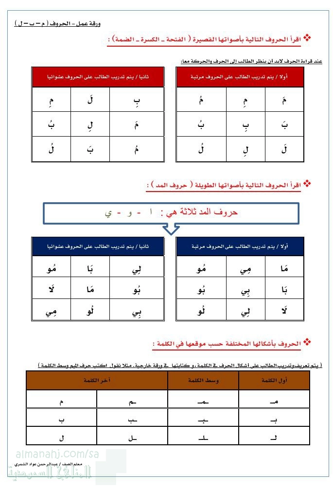 ورقة عمل مراجعة الأحرف م ب ل